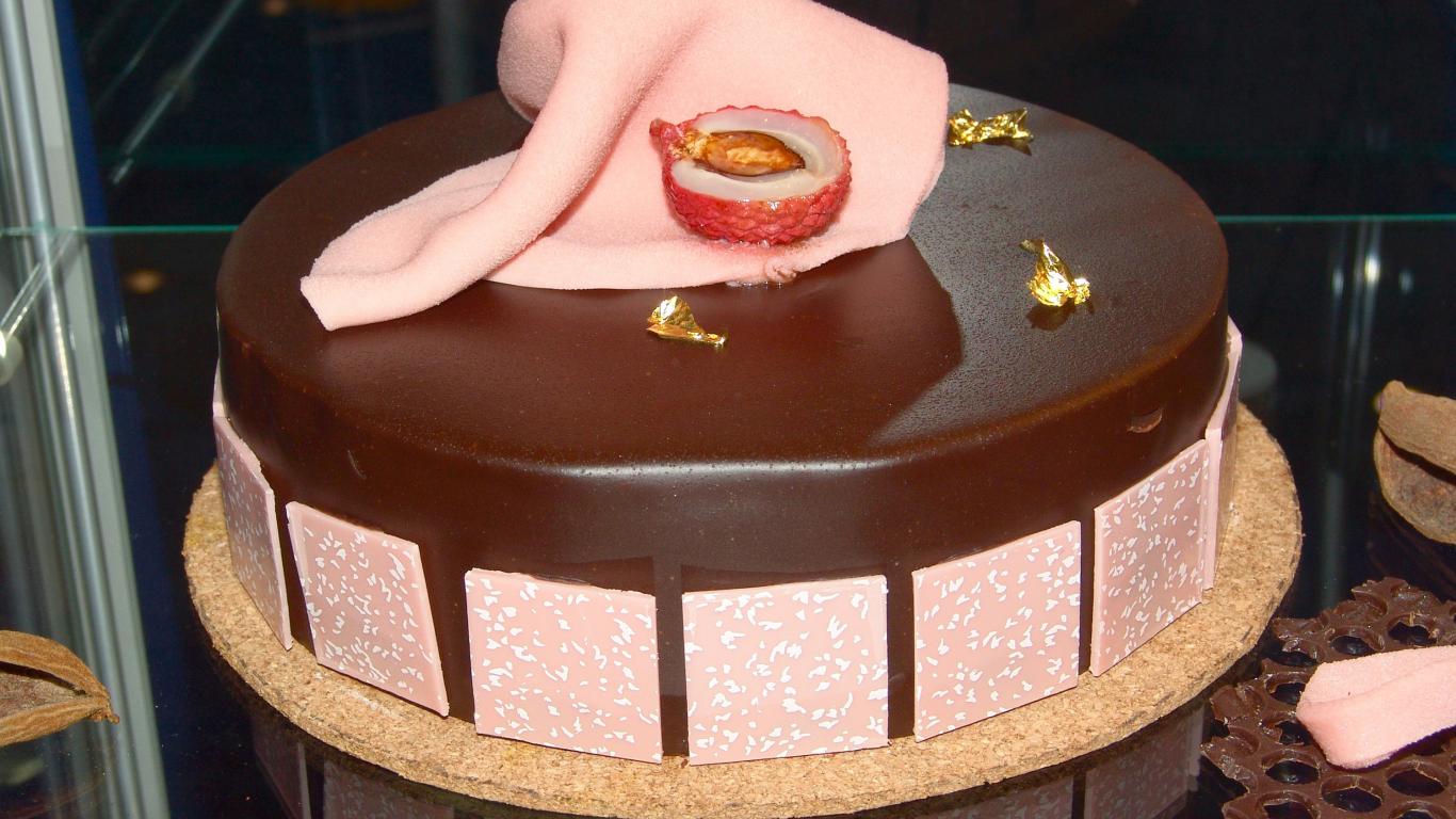 Wallpaper A beautiful chocolate cake with pink inserts