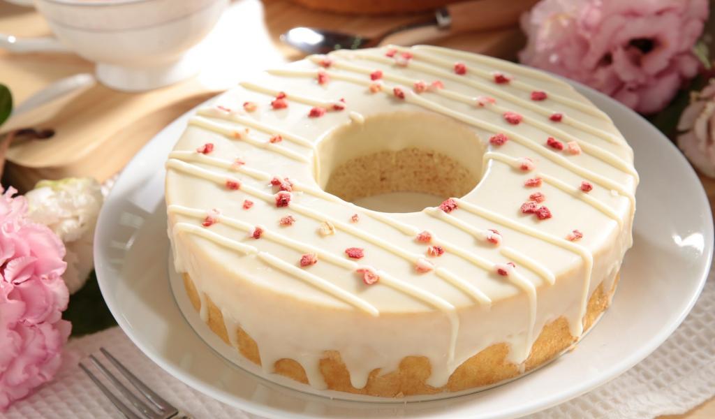 Wallpaper Round cupcake with icing on a white plate