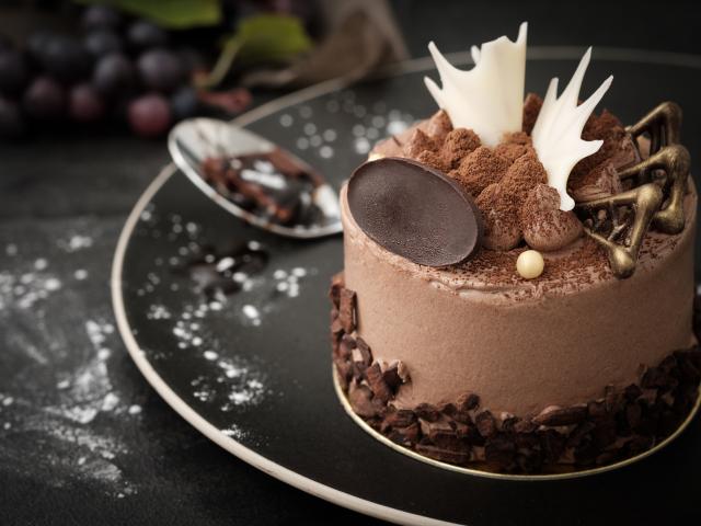 Wallpaper Appetizing cake with chocolate pattern is on the table