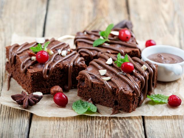 Wallpaper Pieces of chocolate cake with berries