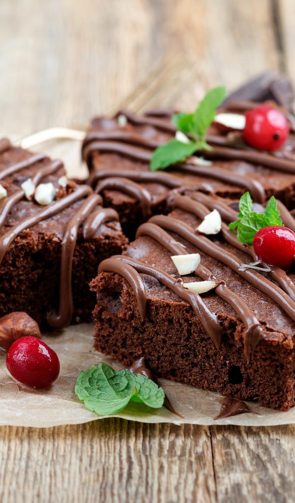 Wallpaper Pieces of chocolate cake with berries