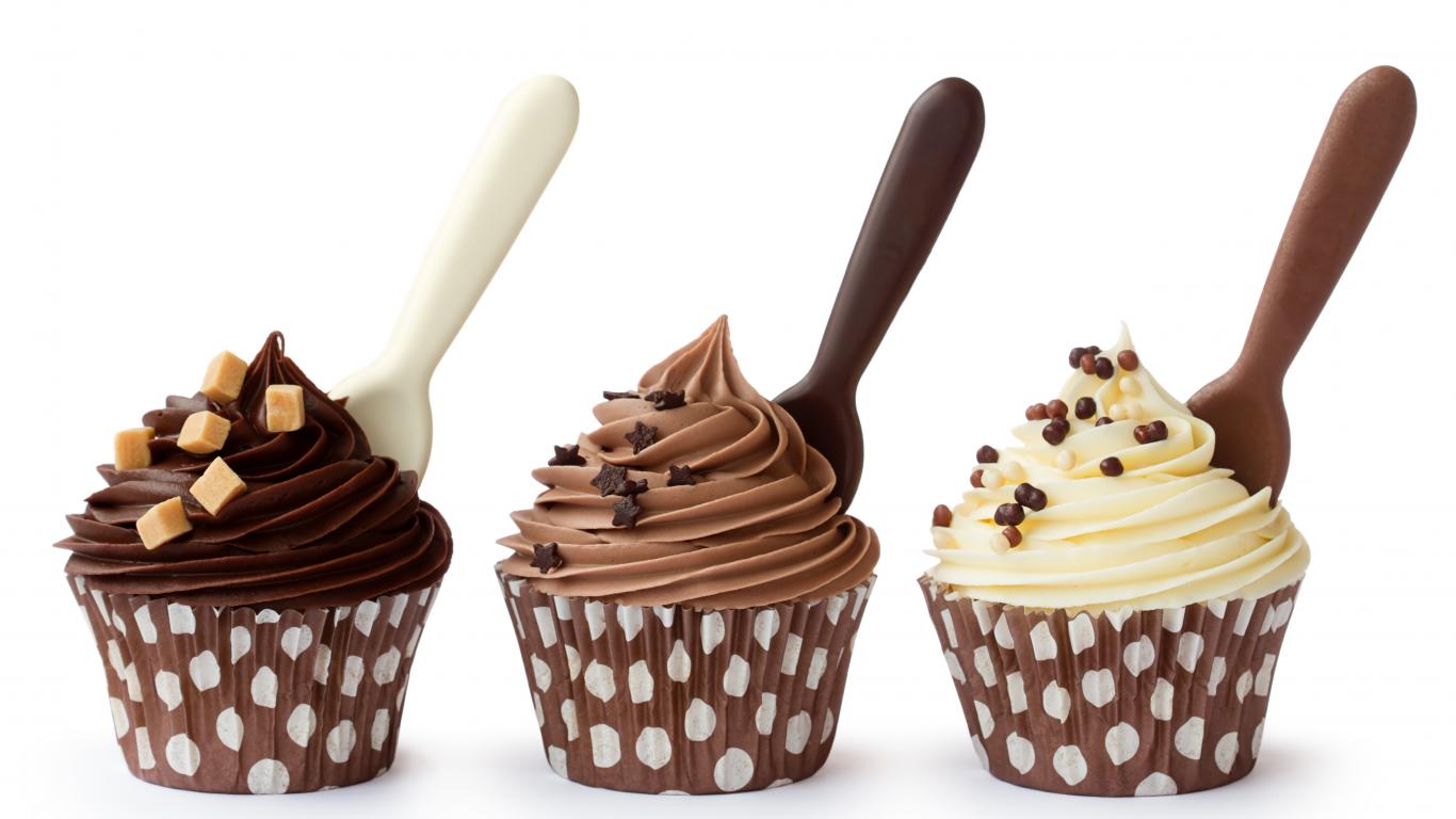 Wallpaper Muffins with cream on a white background