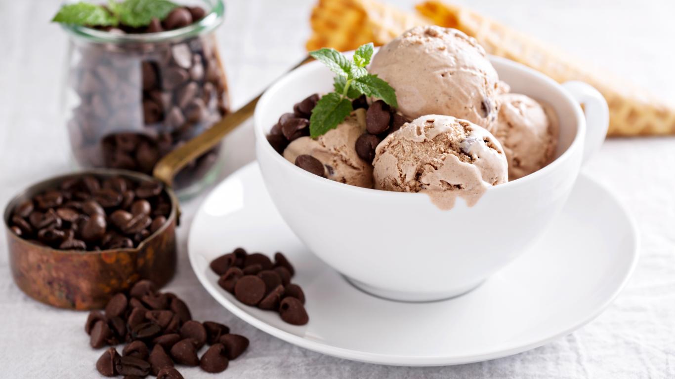 Wallpaper Appetizing fruit ice cream with coffee beans