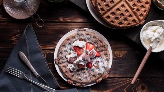 Wallpaper Sweet wafers with cream and strawberry berries