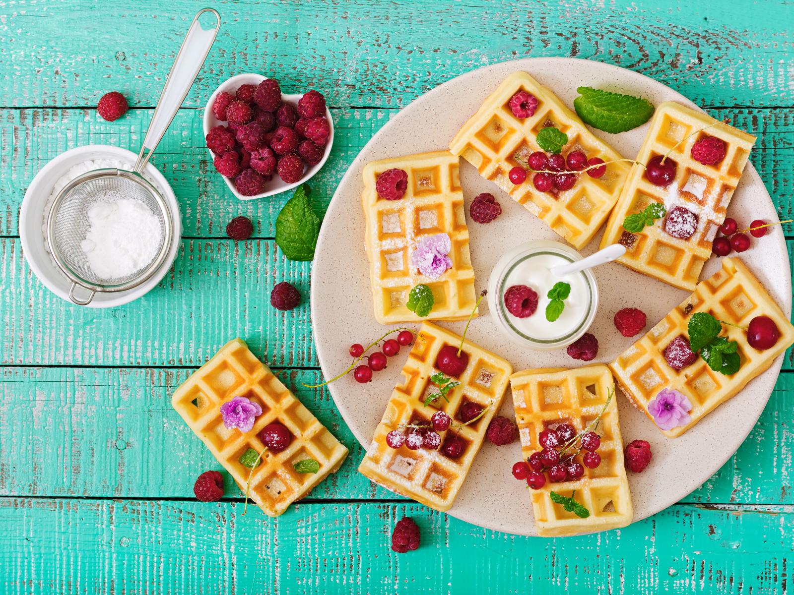 Wallpaper Wafers with raspberries and red currants on a plate