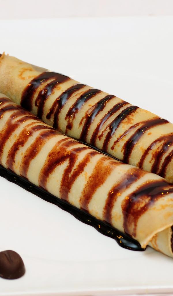 Wallpaper Pancakes with chocolate filling on a plate