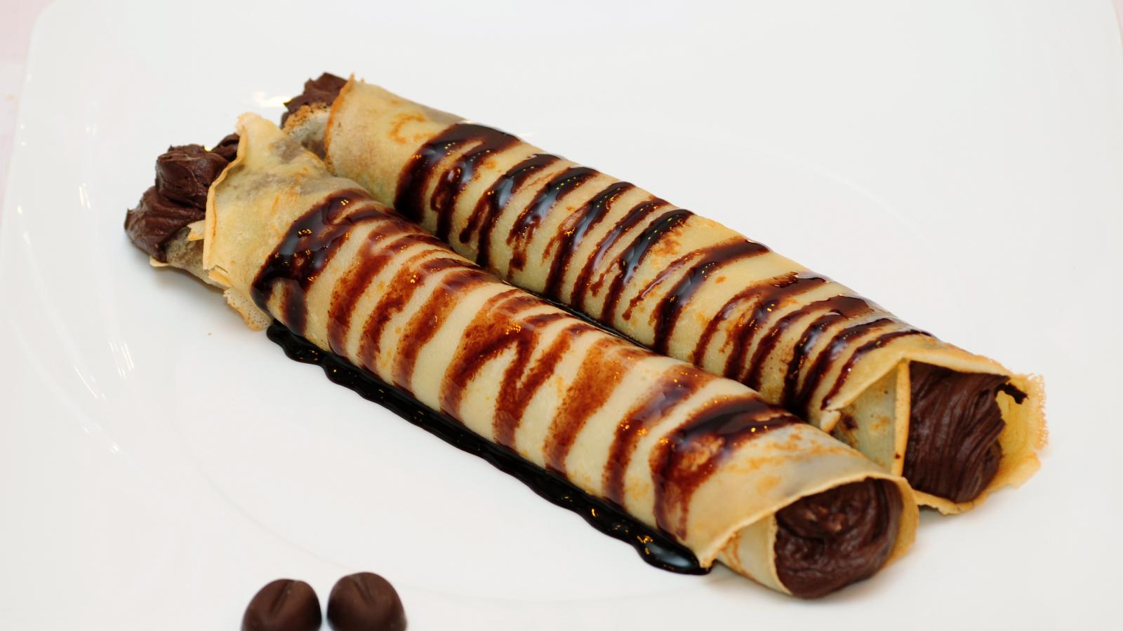 Wallpaper Pancakes with chocolate filling on a plate