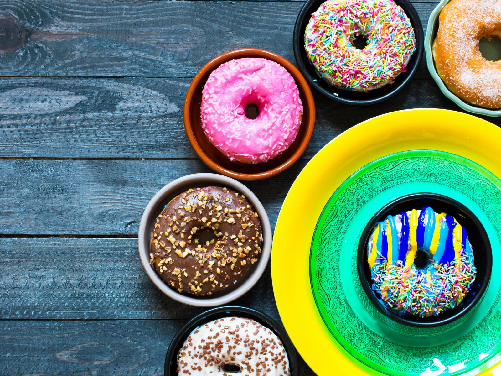 Wallpaper Appetizing donuts with cherries on the table with coffee