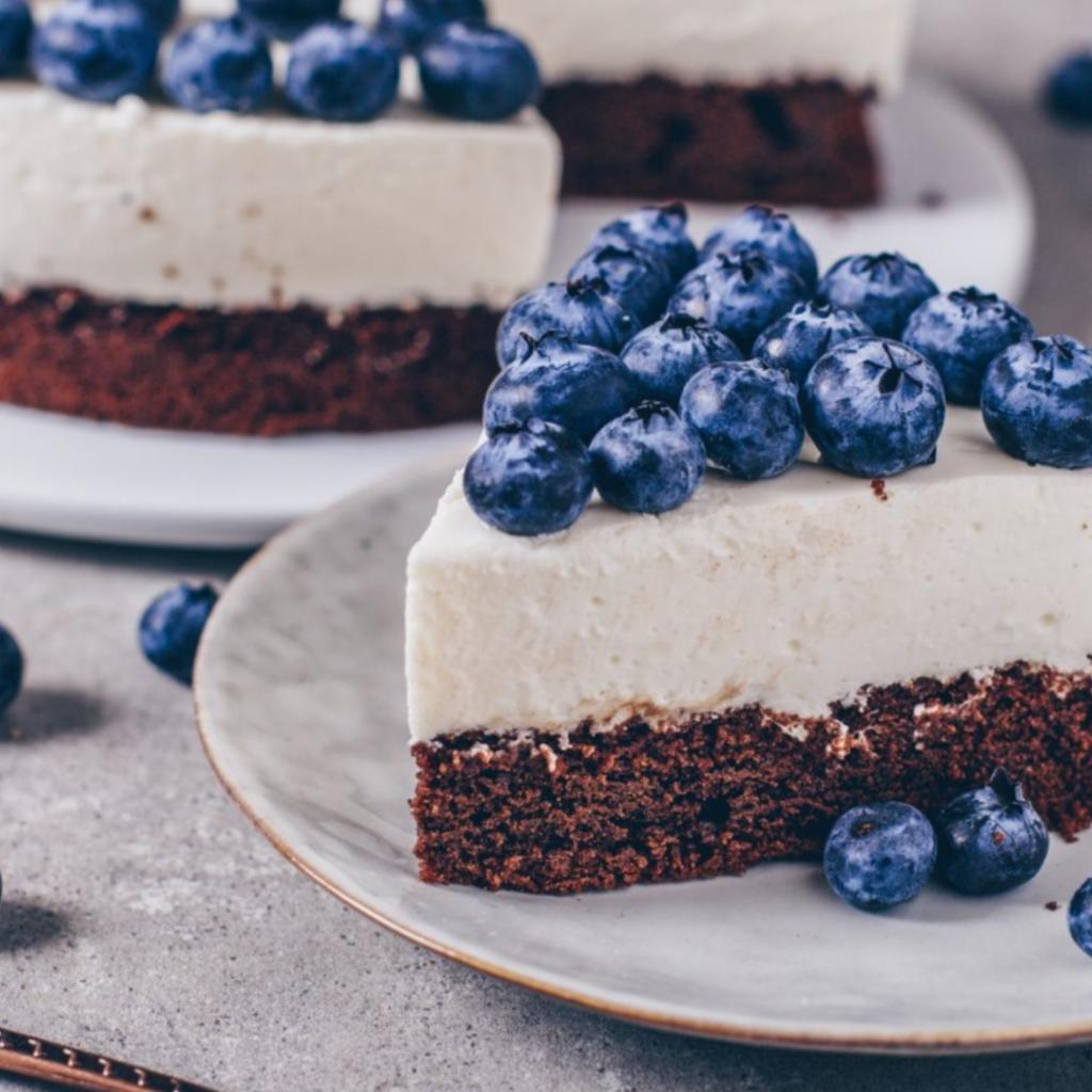 Wallpaper Cheesecake with blueberries on a plate