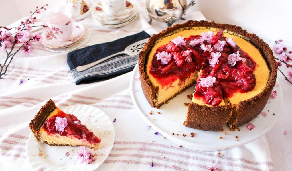 Wallpaper Cheesecake with jam on the table