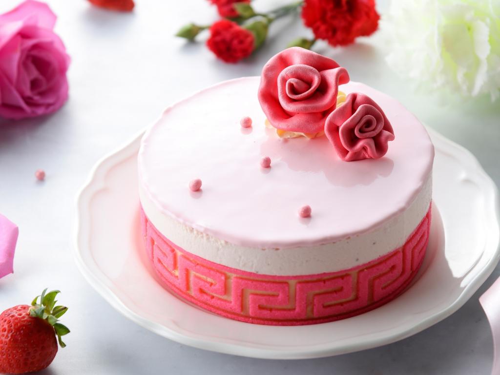 Wallpaper Cake souffle on a table with flowers