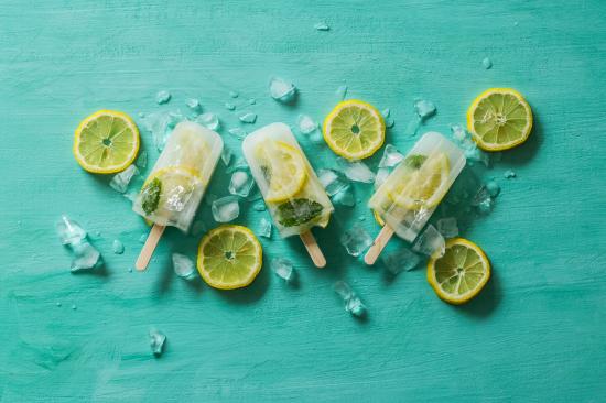 Wallpaper Fruit ice cream with lemon and ice slices on the table