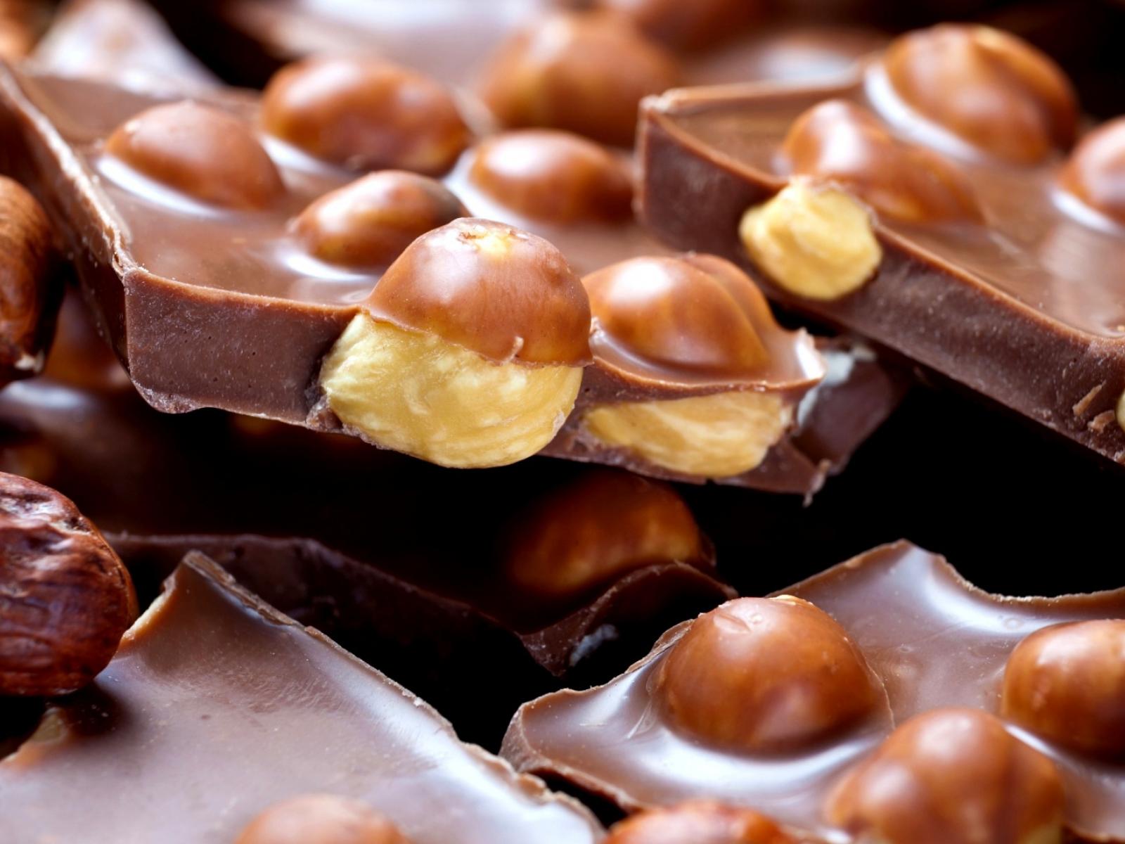 Wallpaper Delicious milk chocolate with hazelnuts