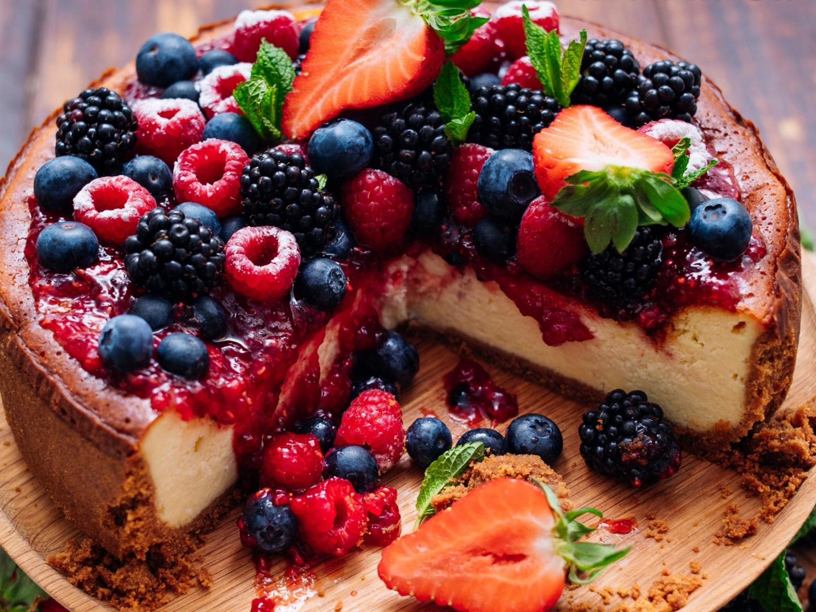Wallpaper Delicious sweet cheesecake with fresh berries
