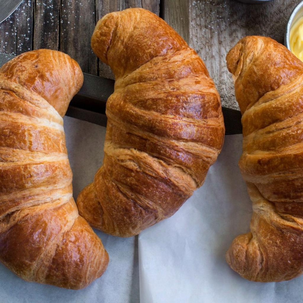 Wallpaper Three fresh croissants on a table with cream
