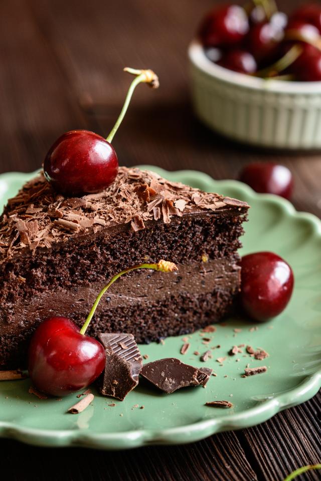 Wallpaper A piece of cake with cherries on a plate