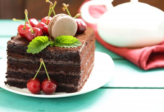 Wallpaper A piece of chocolate cake with cherries