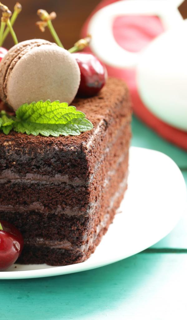 Wallpaper A piece of chocolate cake with cherries
