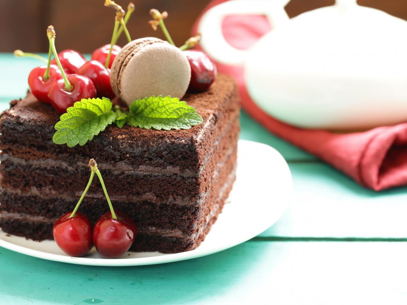 Wallpaper A piece of chocolate cake with cherries