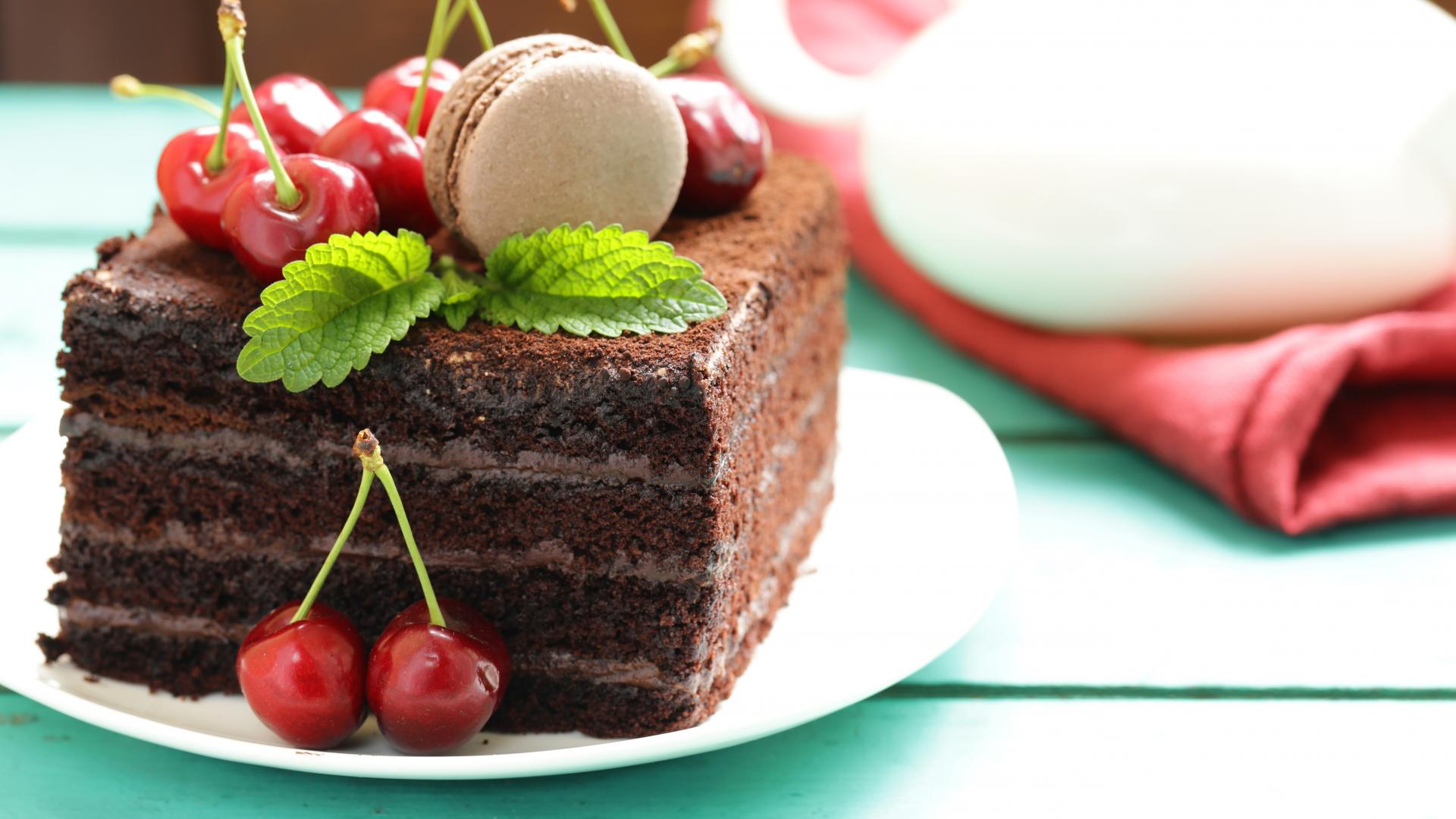 Wallpaper A piece of chocolate cake with cherries
