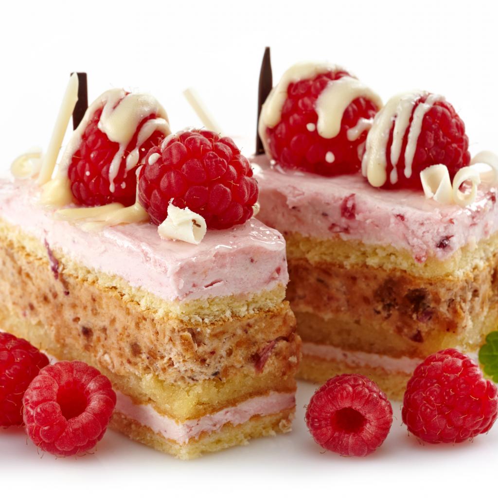 Wallpaper Cakes with raspberry berries on white background