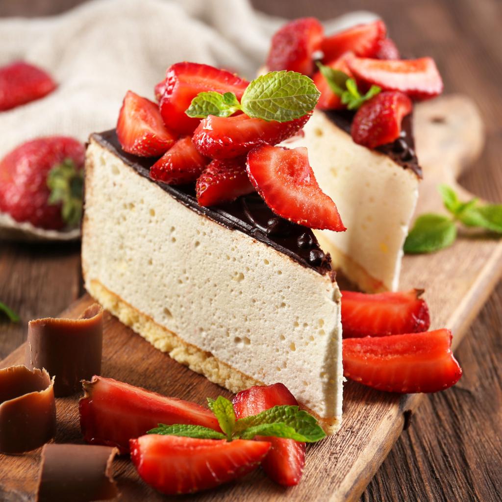 Wallpaper Cheesecake with chocolate and strawberries