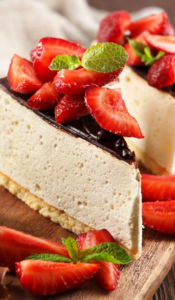 Wallpaper Cheesecake with chocolate and strawberries