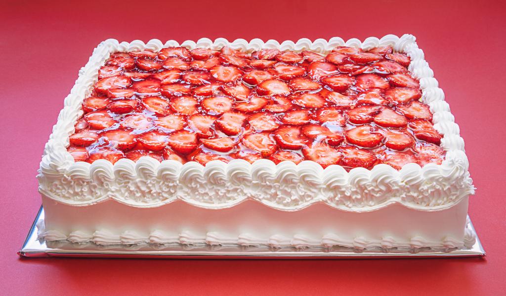 Wallpaper A large festive cake with white cream and strawberries