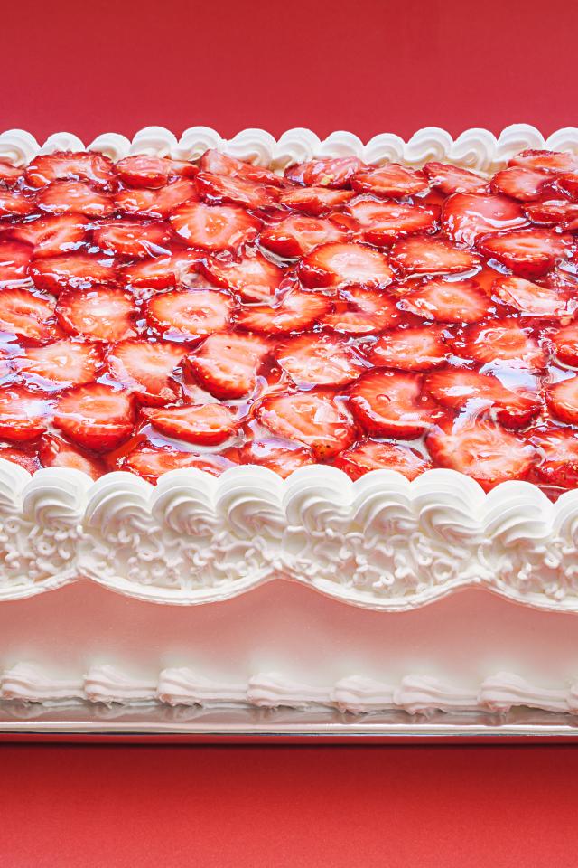 Wallpaper A large festive cake with white cream and strawberries