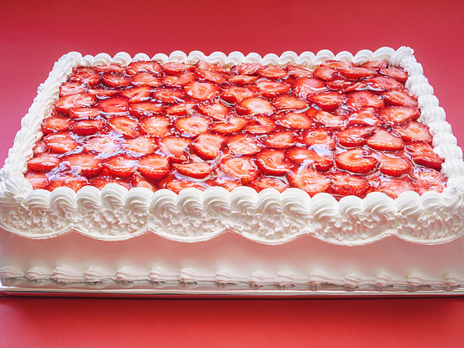 Wallpaper A large festive cake with white cream and strawberries