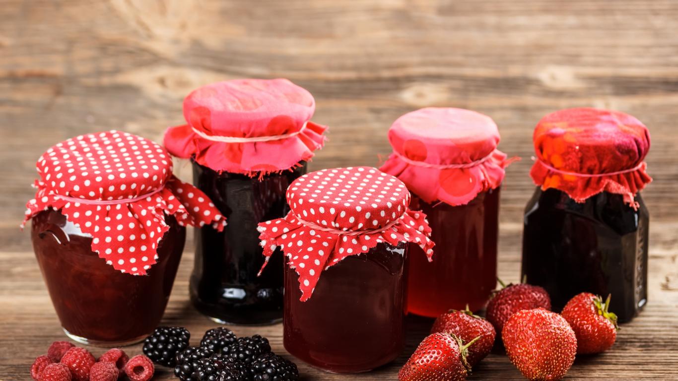 Wallpaper Strawberry, blueberry and raspberry jam in jars