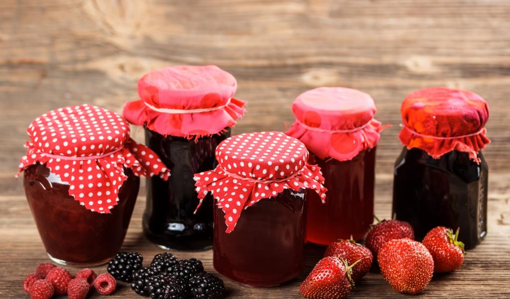 Wallpaper Strawberry, blueberry and raspberry jam in jars