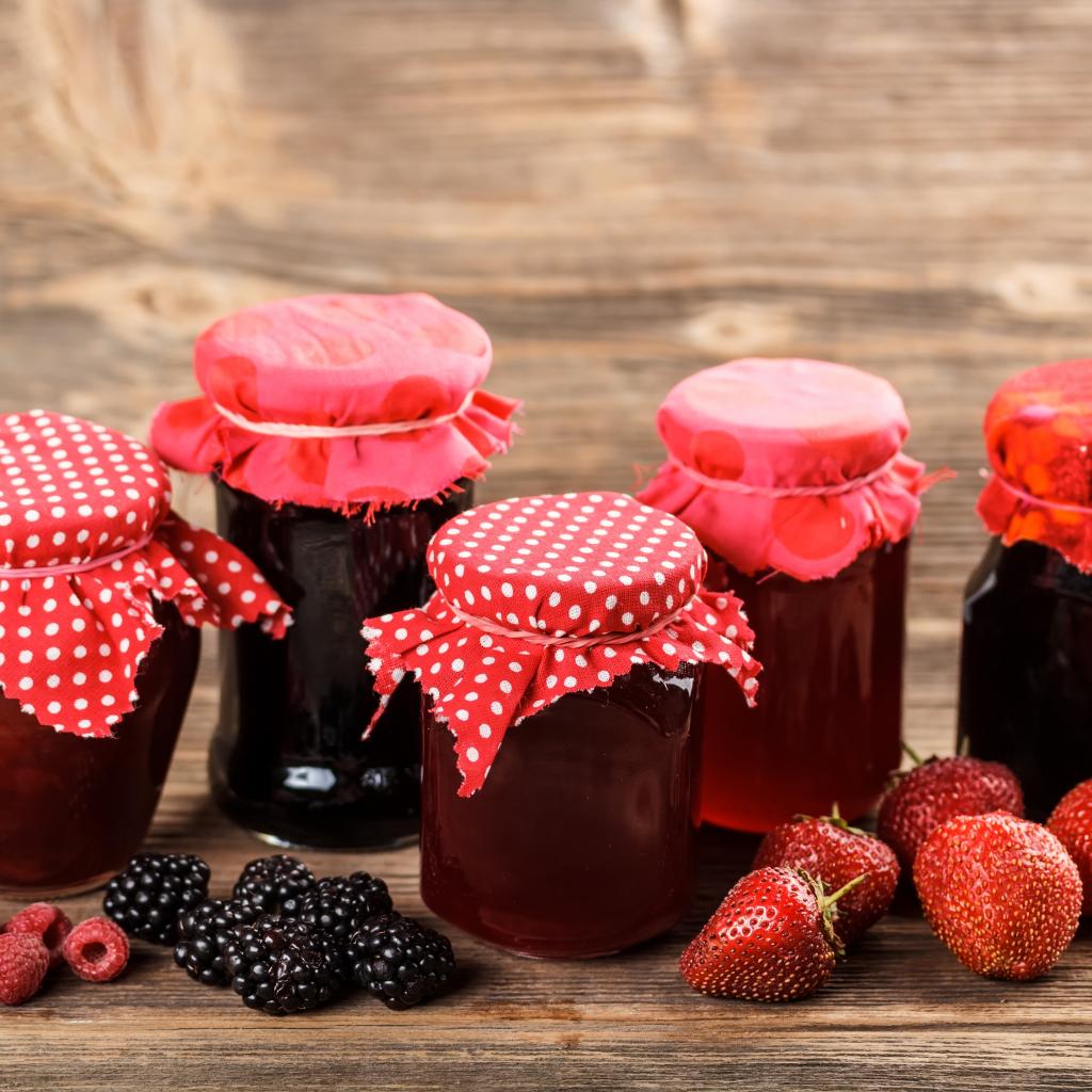 Wallpaper Strawberry, blueberry and raspberry jam in jars