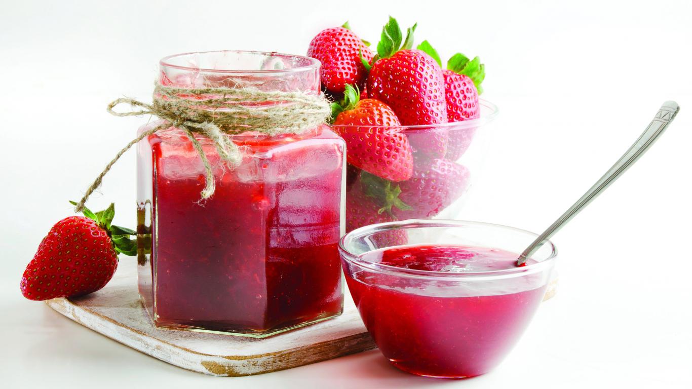 Wallpaper Strawberry jam with berries on a white background