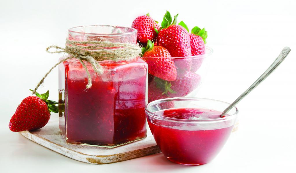 Wallpaper Strawberry jam with berries on a white background