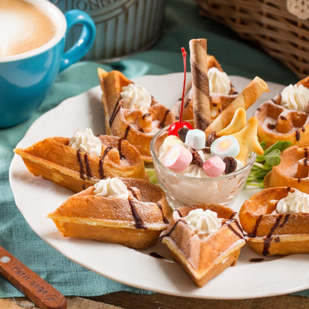 Wallpaper Dessert with ice cream and a cup of coffee