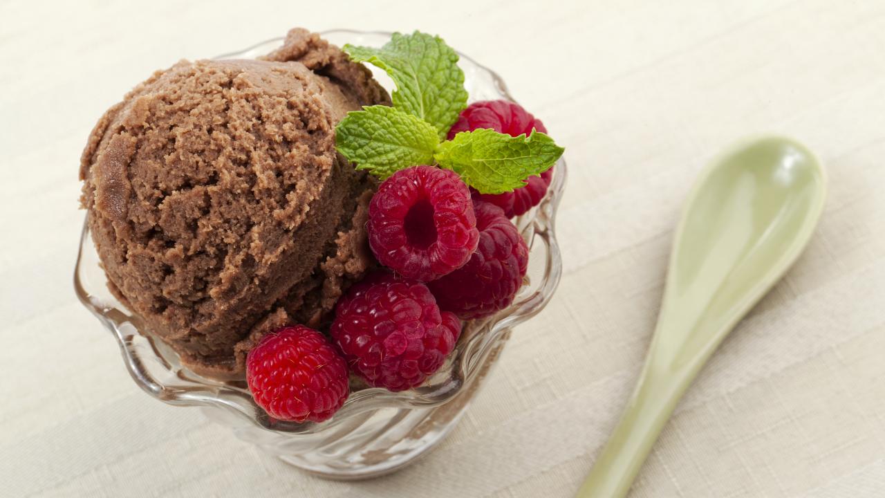 Wallpaper Coffee ice cream in a croissant with fresh raspberries
