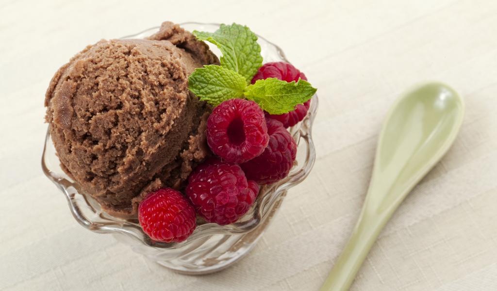 Wallpaper Coffee ice cream in a croissant with fresh raspberries