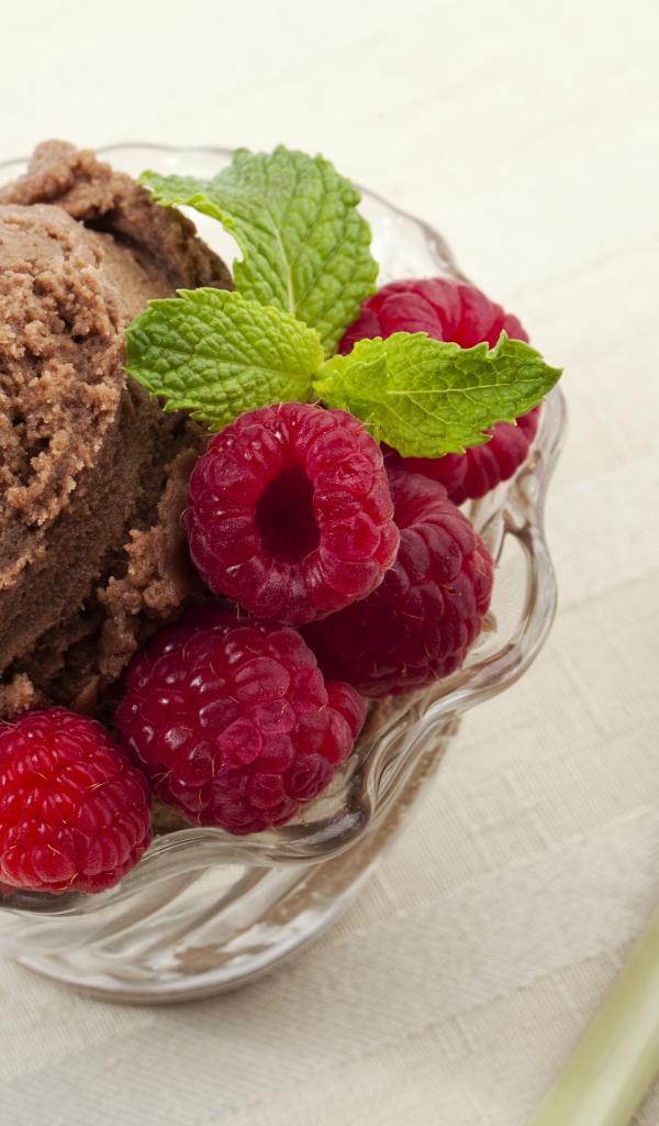 Wallpaper Coffee ice cream in a croissant with fresh raspberries