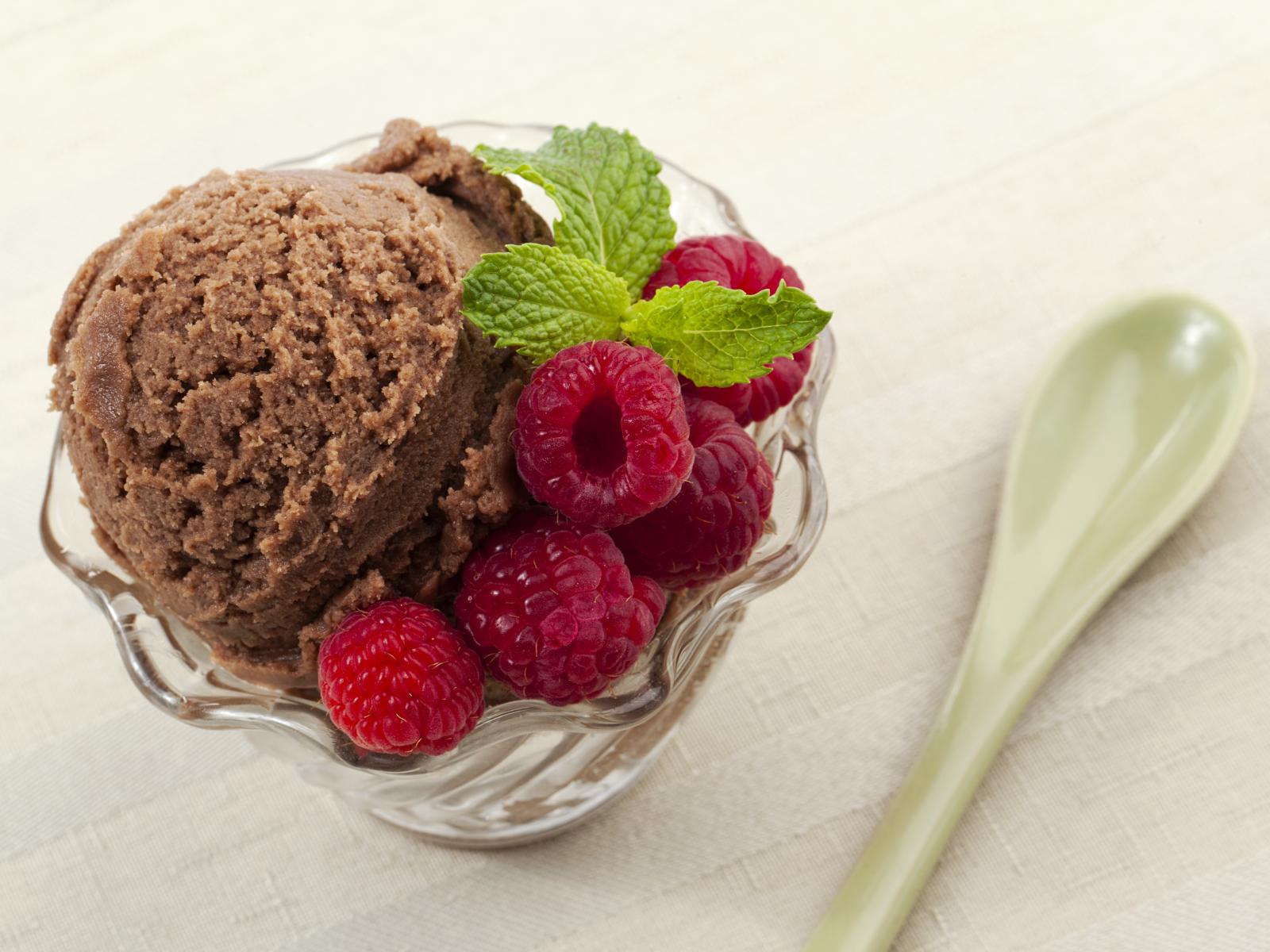 Wallpaper Coffee ice cream in a croissant with fresh raspberries