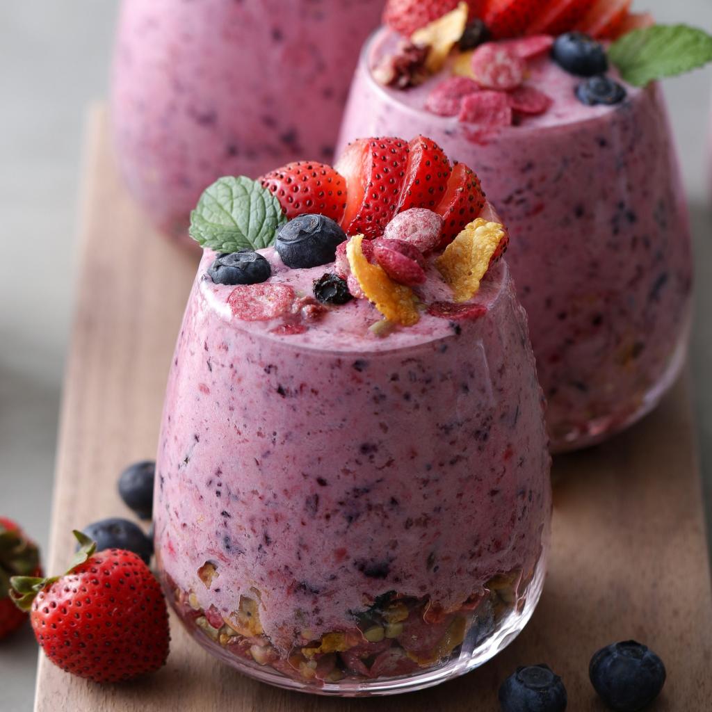Wallpaper Sweet dessert with berries in glasses on the table