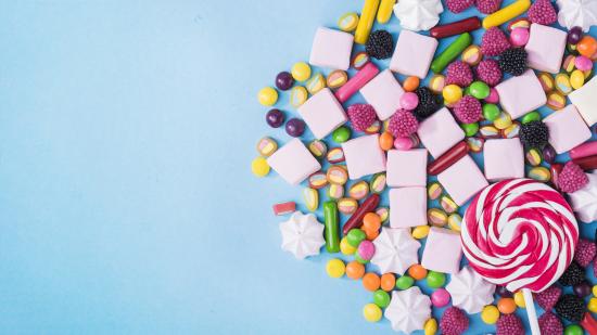 Wallpaper Marshmallow, candy and jelly on a blue background