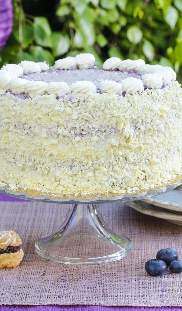 Wallpaper Delicious beautiful cake with blueberries on the table