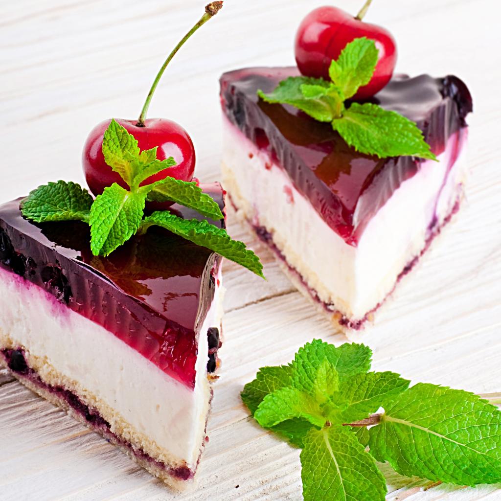 » Wallpaper Two appetizing cakes with cherries and fresh mint