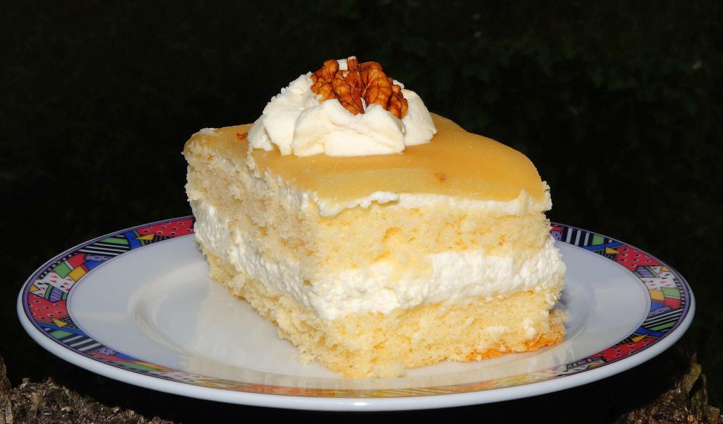 Wallpaper A piece of cake with cream and walnuts