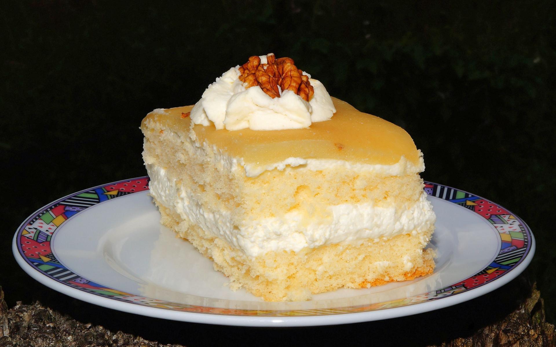Wallpaper A piece of cake with cream and walnuts