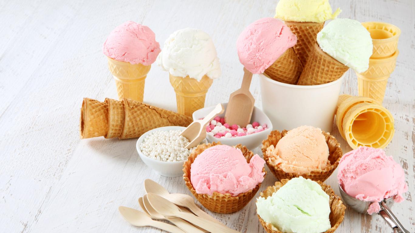 Wallpaper Ice cream in wafer cups on the table