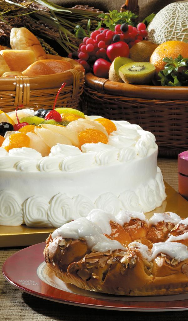 Wallpaper Beautiful white cake with a pie on the table