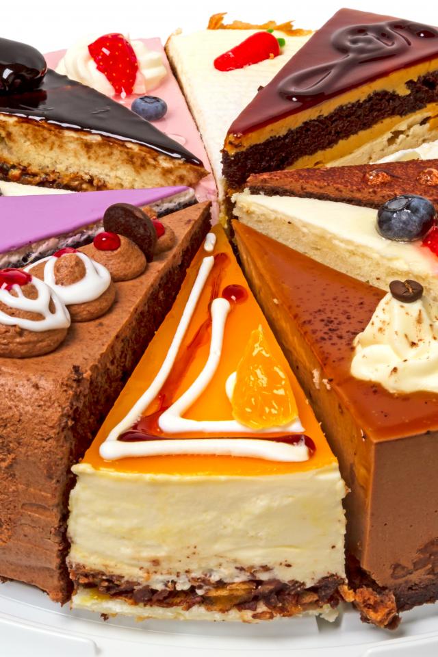 Wallpaper Assorted pieces of cake on a white background