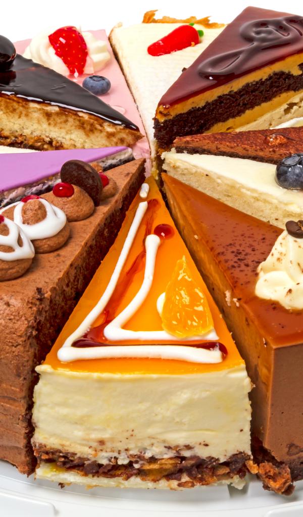 Wallpaper Assorted pieces of cake on a white background